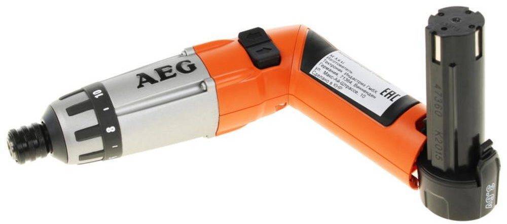 Модель AEG SE 3,6 Li. Достаточно мощная отвертка с максимальным крутящим моментом в 6,6 Нм и регулировкой усилия в 10 позиций. От 200-та до 600-та оборотов, данная функция также регулируется. Емкость батареи 1,5 Ач, с достаточно маленьким временем зарядки, около 30-ти минут. Отличная аккумуляторная отвертка за сто долларов.