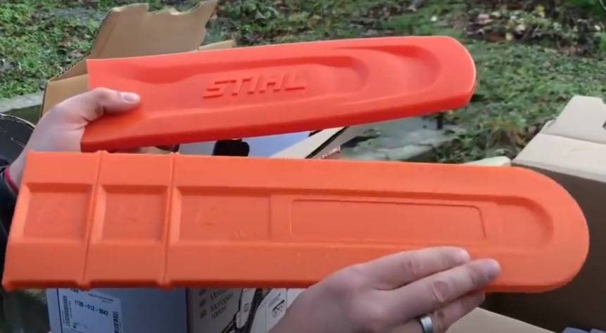 Но отличий визуально незаметно при условии, что в комплект уложена шина, соответствующая по длине стандарту компании Stihl (30 или 35 см). Однако, как правило, китайские поддельщики стараются завлечь покупателей повышенной длиной этого элемента – 40 или 45 см.