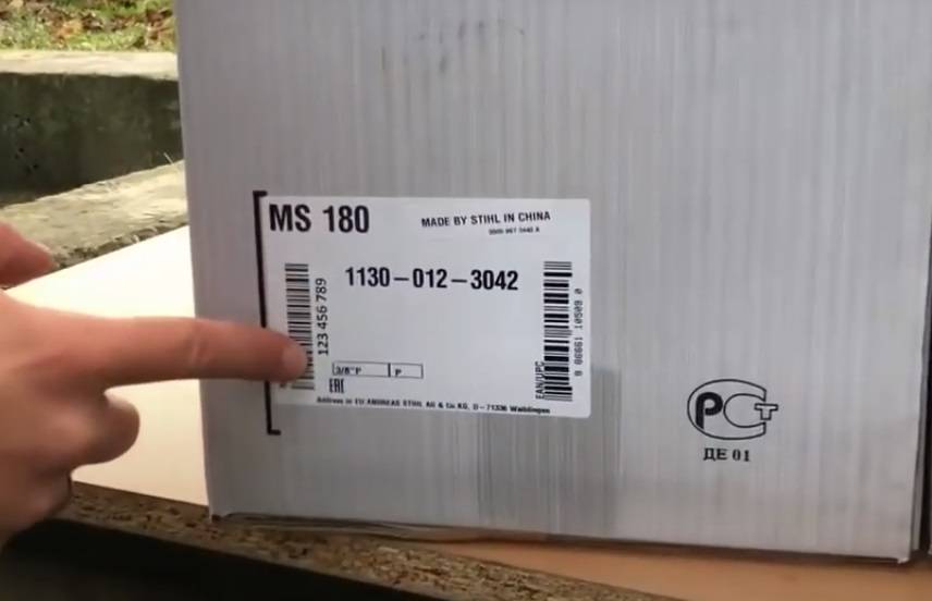 Отличить упаковку сложно, так как уровень полиграфии высок. Поддельные пилы упаковывают в точные копии оригинальных коробок. Отличить можно по наклеенной информационной табличке. Если перед вами несколько пил, сравните эти таблички и номера на них. Как минимум они должны отличаться. Каждый номер уникален.