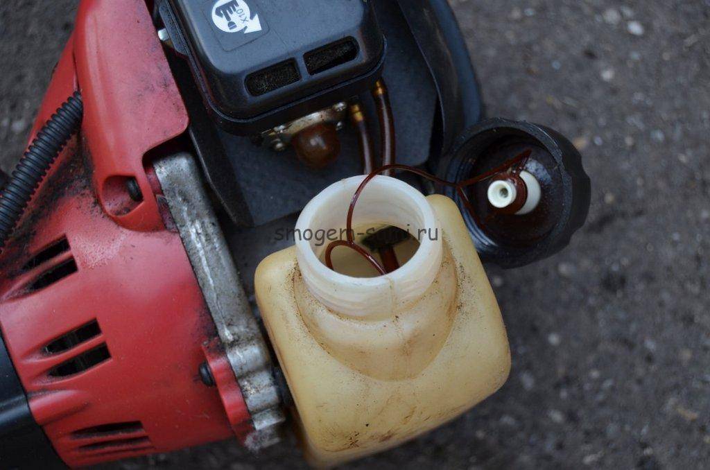 Перед запуском двигателя бензиновой косы проверьте наличие, и качество топливной смеси. Не экономьте, не жадничайте и «не умничайте» в этом вопросе. Самый лучший легкий бензиновый триммер. Ремонт или замена поршневой группы обойдется вам слишком дорого (иногда до 70% стоимости нового инструмента). Готовить масляно-топливную смесь нужно строго по инструкции. Рассчитывайте ее количество из реальных потребностей. Лишний бензин, оставшийся после работы с течением времени теряет свои качества.