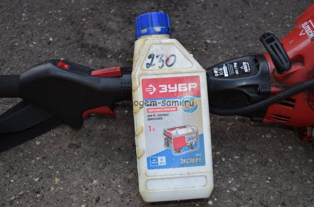 Не забудьте в бак добавить специальное масло для двигателей, достаточно 50 грамм на бензобак, без него мотор начнет «чихать» и быстро придет в негодность.