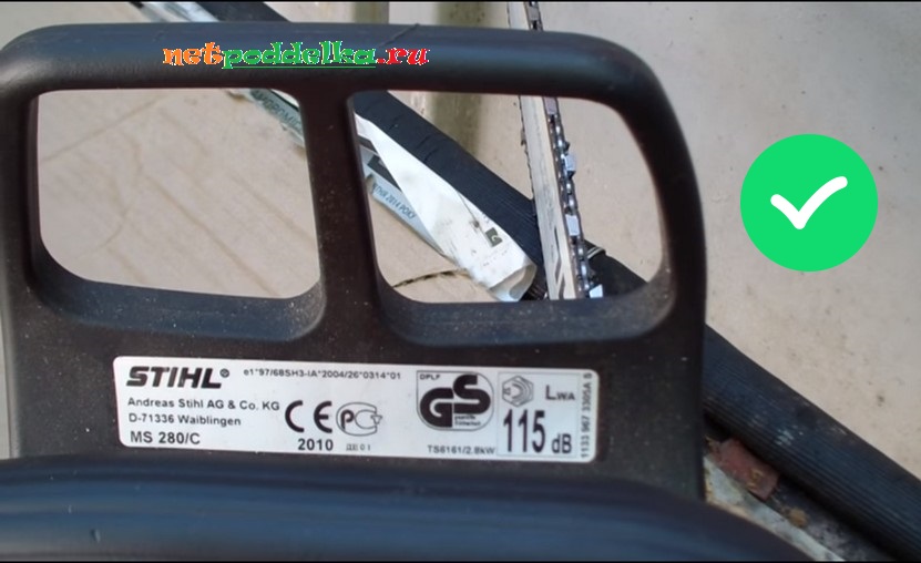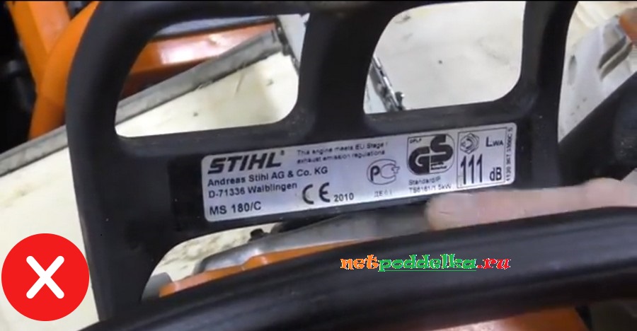 Кроме того, стандартная цепь имеет на каждом звене букву S, в отличие от поддельных экземпляров. На оригинальной модели применяется минимум наклеек (есть на рукоятке, где прописаны правила безопасности). Основной логотип STIHL приклеен быть не может.
