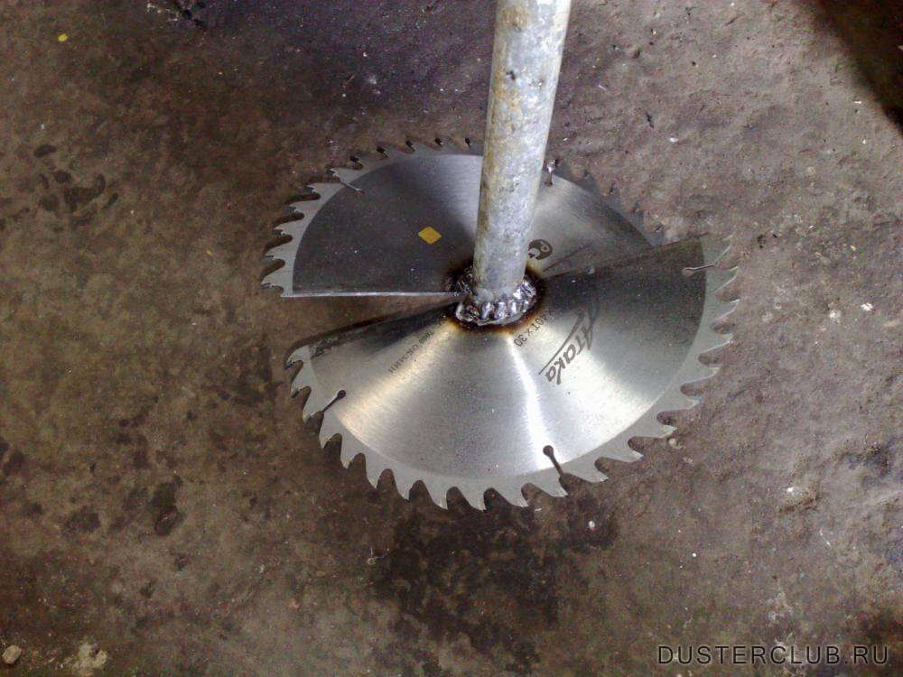 Вы можете изготовить дисковый инструмент со съемными лезвиями при необходимости. Для этого вместо самих лезвий приварите к штоку металлические площадки под нужным углом, а режущие элементы закрепите болтами. Когда понадобится, вы сможете заменить их на лезвия другого диаметра.
