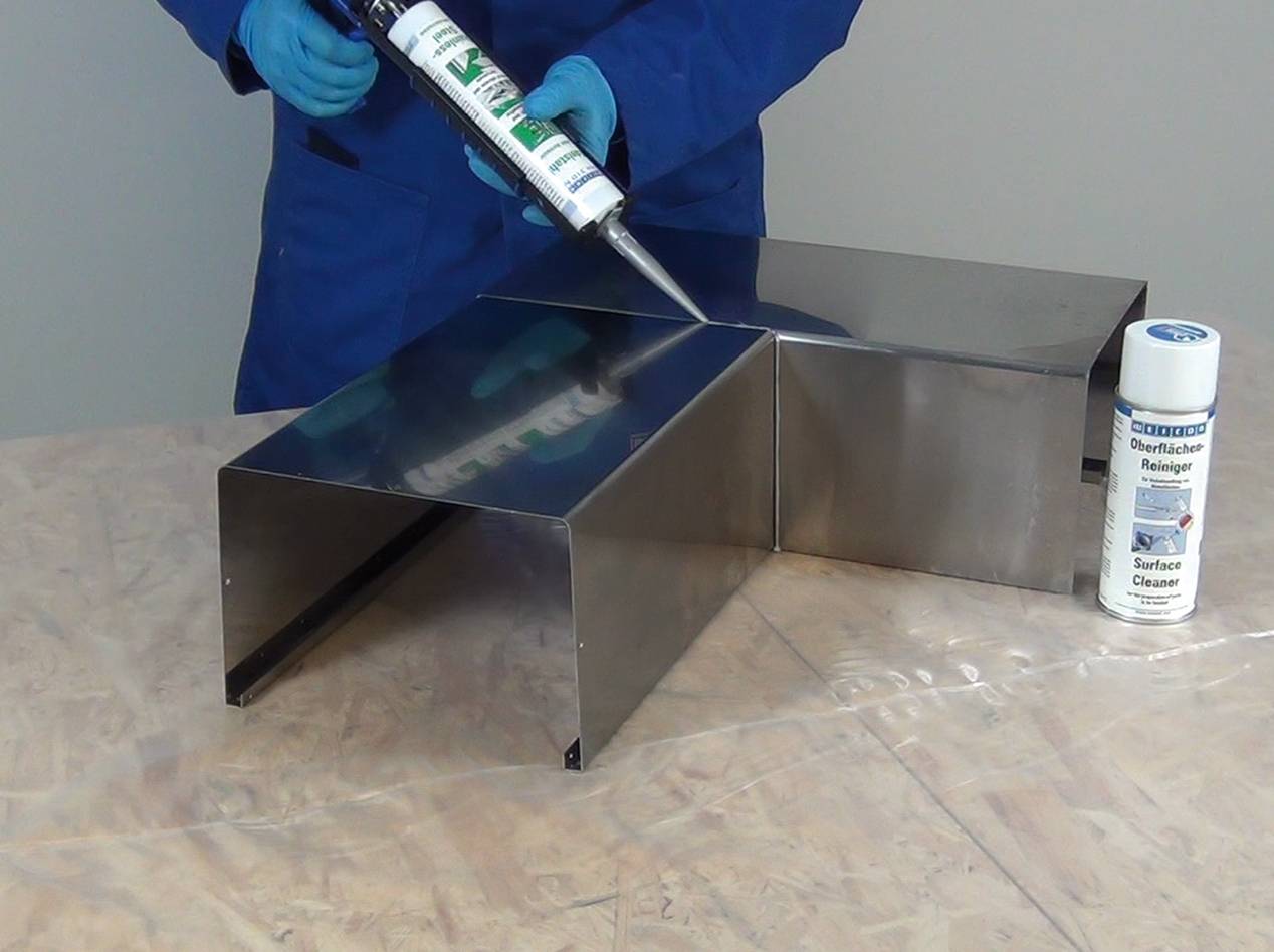 Независимо от типа адгезива решающее значение для качества склейки имеет подготовка поверхностей. Характерный для металлических поверхностей слой окиси или ржавчина существенно ухудшают качество сцепления. С целью защиты от коррозии стальные детали часто покрывают масляной смазкой, которая тоже препятствует адгезии. Место шва перед склеиванием нужно сделать чистым и гладким.