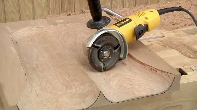 Обработка древесины при помощи болгарки безопасный процесс, в отличие от резки. Процесс очень травмоопасен, инструмент не предназначен для резки дерева