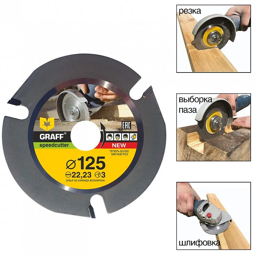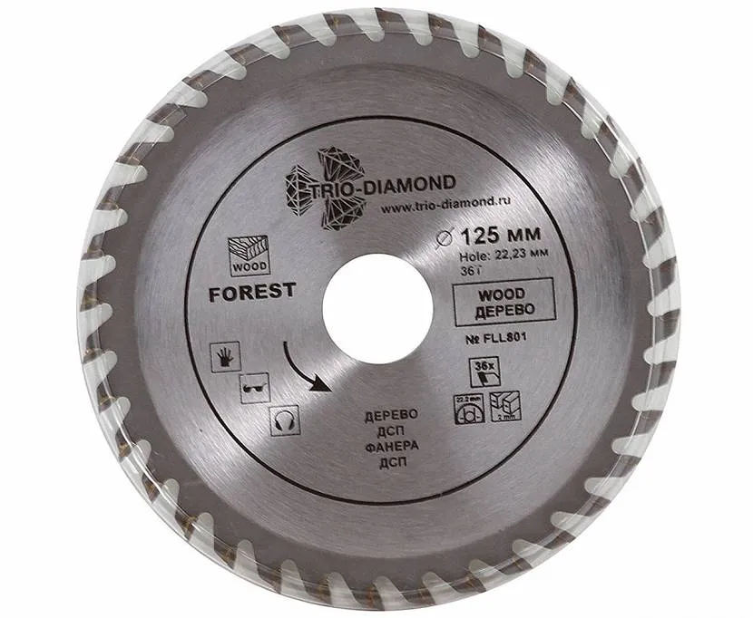 Повышенная безопасность при работах древесиной достигается использованием дисков с малым количеством зубьев. Диски небольшого размера обычно имеют 3 зуба, диаметра более 180 мм – 4 зуба. Представленный тип отрезного диска используется при резка как вдоль, так и поперек волокон древесины. Пильный круг дает возможность вырезать пазы, изготавливать шипы различной формы.
