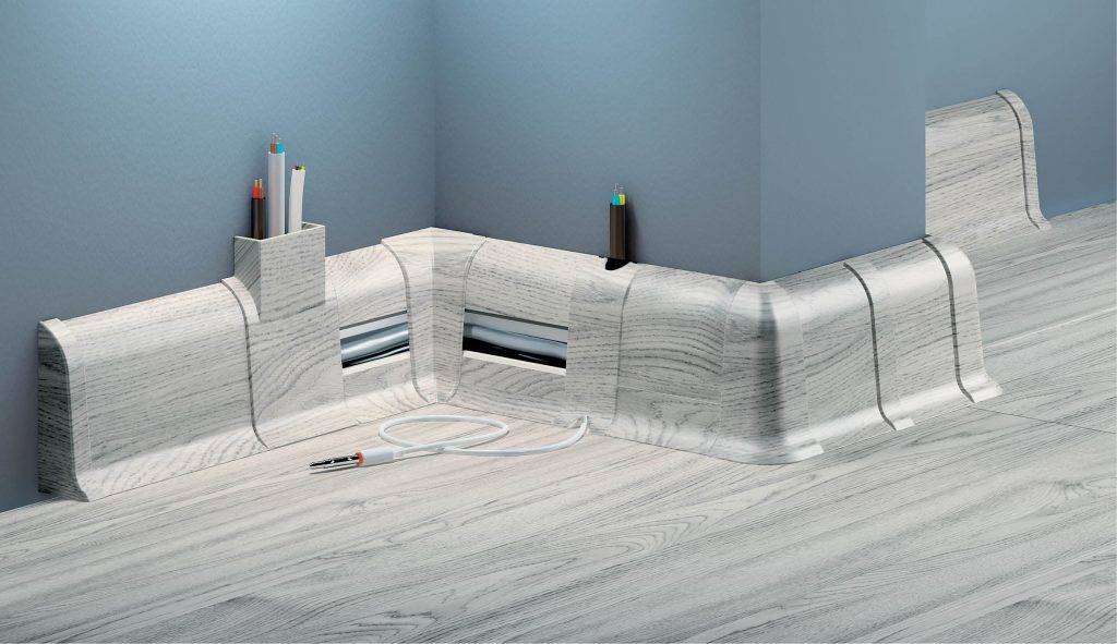 Резать планку, закрывающую кабель-канал, нужно после подготовки самого плинтуса. Когда он обрезан точно по размеру, необходимо установить планку-заглушку и только после этого обрезать и ее.