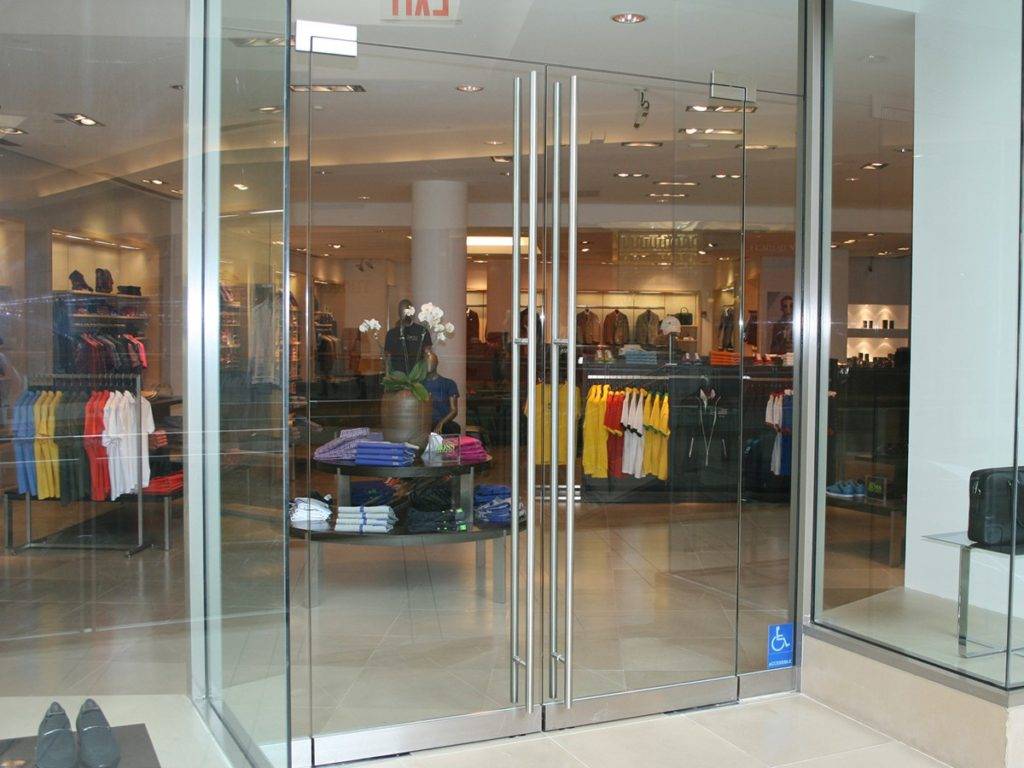 - Прочность. Благодаря применению специальных категорий стекла изделия ничуть не уступают деревянным или пластиковым конструкциям. Ставить в магазин металлические двери смысла нет. Ведь в таких помещениях предусмотрена охрана, видеонаблюдение или сигнализация.