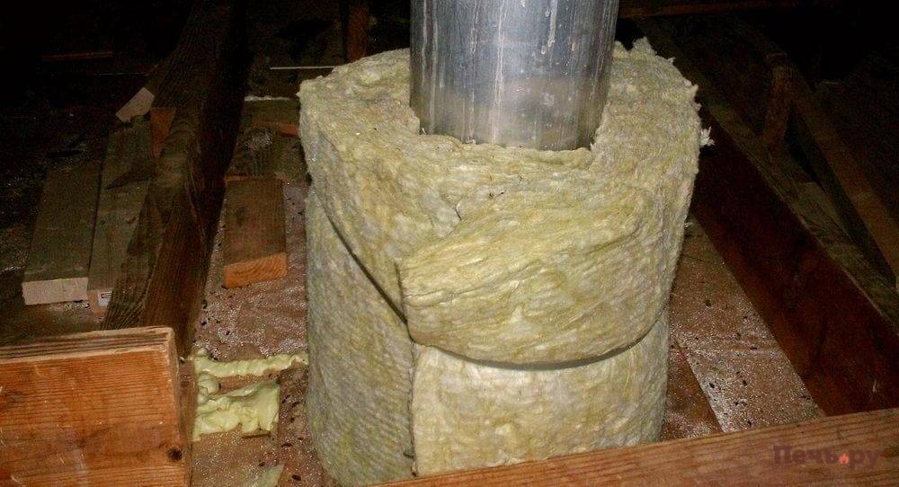 На чердаке достаточно утеплить трубу слоем 5-10 см.
