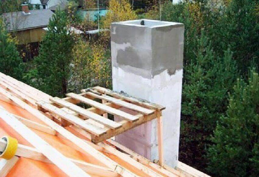 - в кровельных перекрытиях и самой кровле выполняются отверстия, диаметр которых будет на 25 см больше дымоходной трубы;