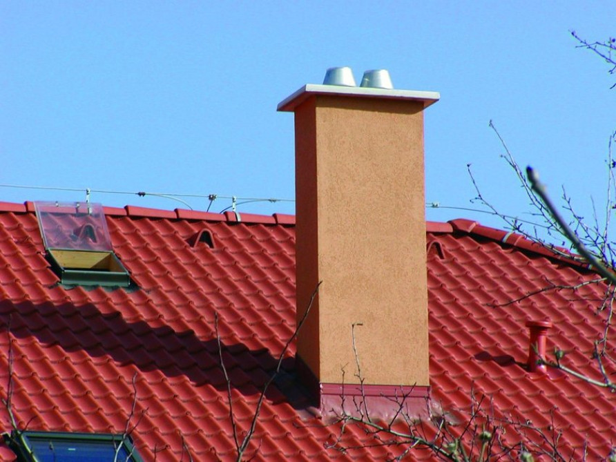 - После просушки штукатурки труба окрашивается в цвет кровельного материала.