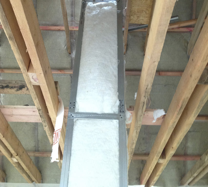 Утепленная таким способом труба для дымохода не является пожароопасной, так как слой обмотки защищён нержавеющей сталью или оцинкованным железом.