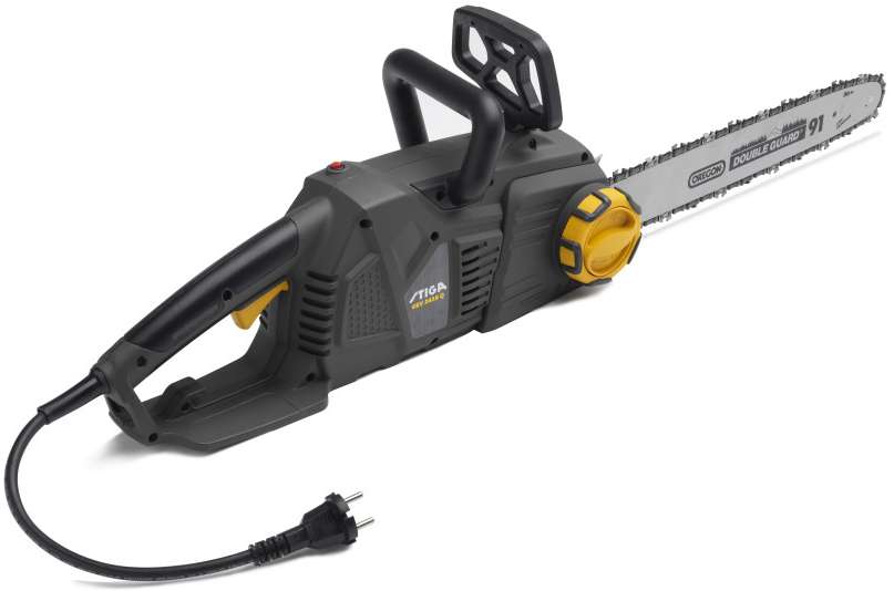Hyundai XE 2400. Эта универсальная электропила характеризуется поперечным размещением двигателя, мощностью 2 400 ватт. Инструмент комплектуется 450 миллиметровой направляющей шиной и пильной цепью, с шагом 3/8 дюйма. Такая конфигурация позволяет использовать электропилу при выполнении самых разнообразных задач, в том числе для распиловки дров, строительных и ремонтных работ. Пила оснащена функцией «Плавный пуск», имеет антивибрационную систему и инерционный тормоз. К недостаткам этой электропилы можно отнести относительно большой вес – 6 килограмм.