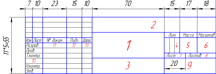- в графе 10 — указываются функции исполнителей: «Разработал», «Проверил»;