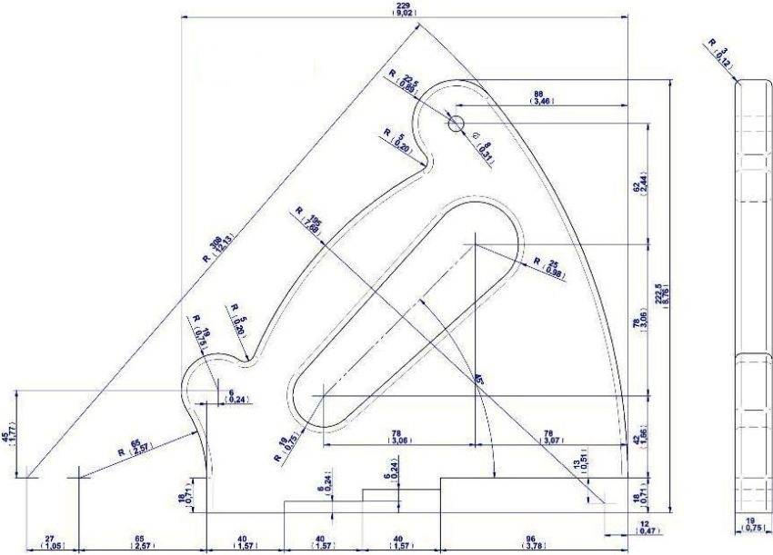 Линейку изготовил из уголка 32 мм и двух кусков стальной полосы шириной 40 мм.