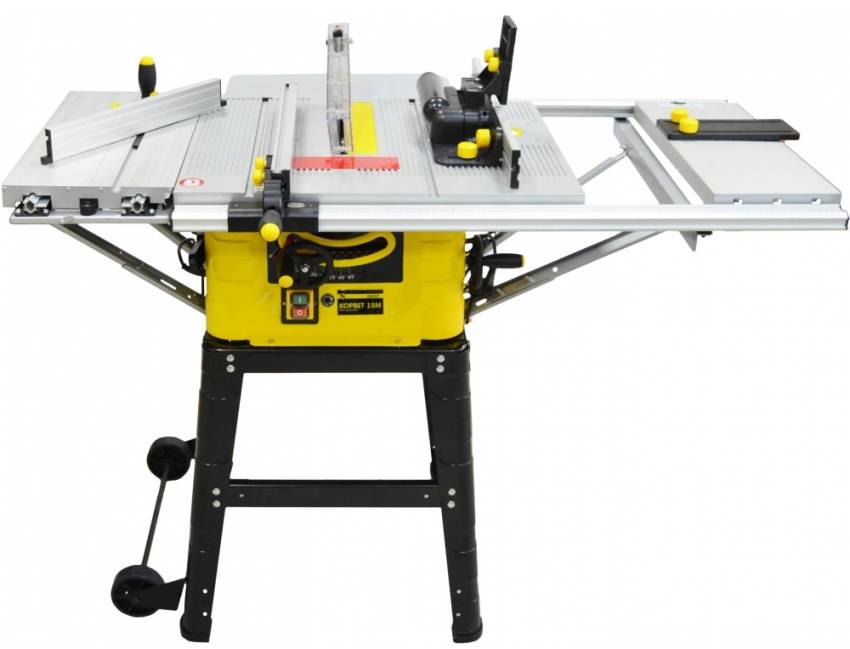 Если выбирать агрегат по типу двигателя, то самыми мощными считаются моторы категории S1. Они рассчитаны на бесперебойную работу. В бюджетных инструментах устанавливают элемент серии S3, длительность функционирования которого не превышает 15 мин. Чем выше частота вращения диска, тем лучше качество обработки заготовок. Устройство будет более компактным и мобильным. Меньшая скорость гарантирует точность разреза древесины любой плотности при работе без остановок. Выдвижные элементы в столе позволяют осуществлять обработку материала большого размера. От вида дополнительных функций зависит уровень безопасности и удобство эксплуатации оператора