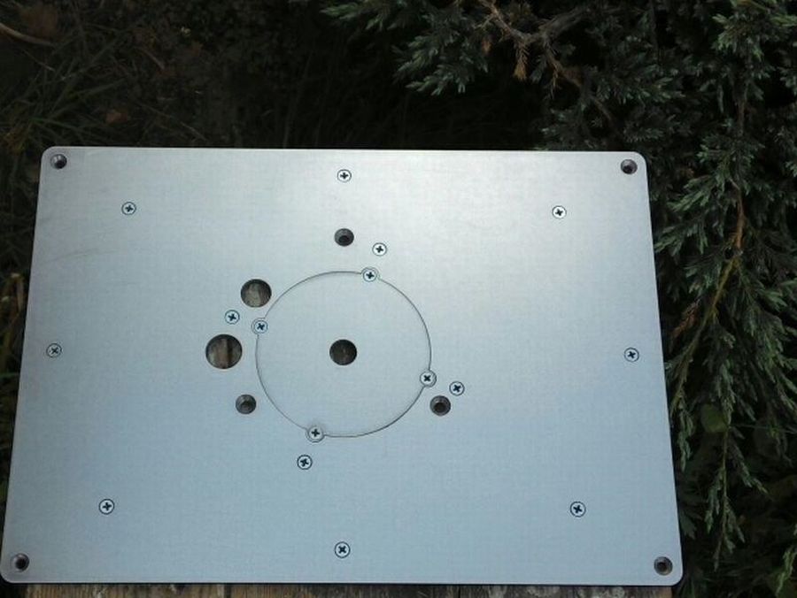 Пластины можно сделать как своими руками, так и использовать готовые варианты для фрезерного стола. По углам пластины делают отверстия для прикрепления к столу.