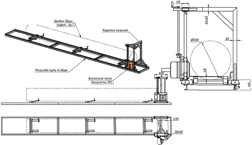Схема изготовления пилорамы из бензопилы своими руками
