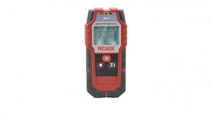 Детектор металла Resanta DM-2 61/10/521 Источник resantashop.ru Эргономичный недорогой аппарат для обнаружения черных металлов, алюминия, меди и дерева. Выполнен в удобном эргономичном корпусе с прорезиненными краями. Индикация высвечивается на 1,8-дюймовом дисплее с синей подсветкой. Различает провода под напряжением и без него. По глубинным параметрам уступает моделям, которые расположились выше в рейтинге.