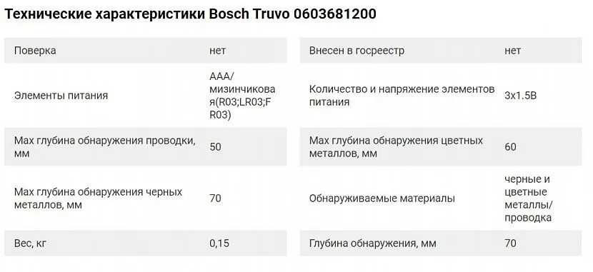 Технические характеристики Bosch Truvo Источник kazan.vseinstrumenti.ru