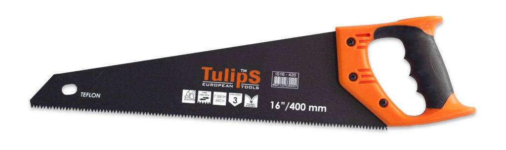 - 40-см полотно с пластиковой рукоятью предназначено для поперечного пиления древесины.