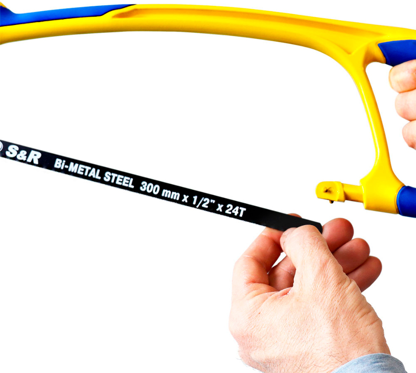 Вставляя полотно в раму для крепления, важно сделать это правильно, иначе скорость распила уменьшится, и таким образом можно сломать пилу. У профессиональных пил по металлу можно также регулировать угол наклона и делать его в 45, 90 или 180 градусов