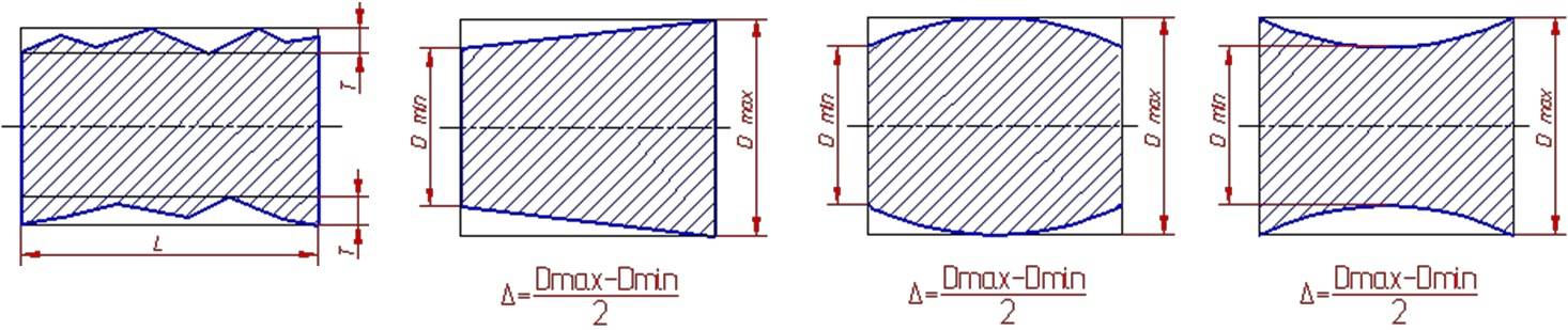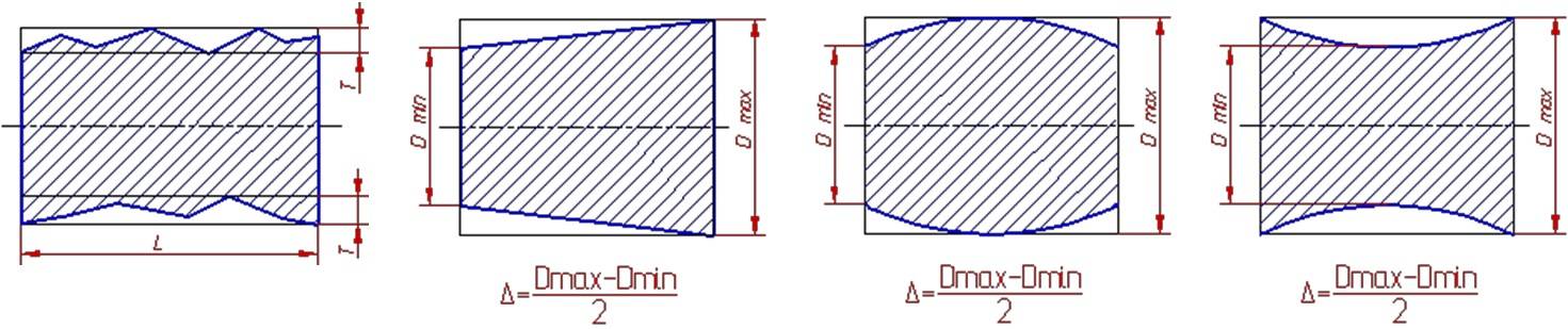 Частными видами отклонения профиля продольного сечения являются конусообразность, бочкообразность и седлообразность.