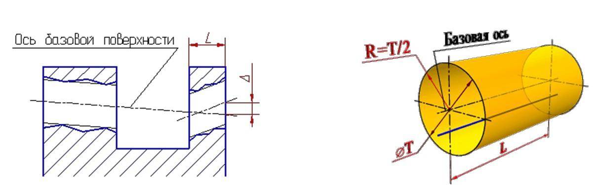Отклонение от соосности относительно оси базовой поверхности — наибольшее расстояние Δ между осью рассматриваемой поверхности вращения и осью базовой поверхности на длине нормируемого участка.