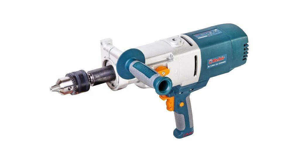 Дрель 2000вт низкооборотистая Rebir IE 1206-16/2000ER может использоваться для сверления различных материалов. Среди них пластмасса, древесина, сталь, цветные металлы. Универсальность порадует владельцев. Дрель Rebir IE 1206-16/2000ER безударного типа. Она обладает высокой мощностью – 2000 Вт. Этого достаточно для полноценного использования инструмента. Скорость вращения достигает 500 оборотов в минуту. В данной модели используется патрон ключевого типа. У вас не возникнет проблем при применении дрели, замена оснастки займет немного времени. Максимальный диаметр патрона – 16 мм. Есть функция реверса. Она используется для запуска вращения в обратную сторону. Подобная опция будет полезна при заклинивании сверла во время работы. В комплекте поставки дрель электрическая низкооборотистая имеет дополнительную рукоятку. Она улучшает фиксацию инструмента в руках. Функция фиксации шпинделя позволяет остановить патрон и сверло. Работает дрель от сети 220 В. Она подключается при помощи кабеля с оптимальной длиной 1.95 м. За счет этого можно комфортно работать с оборудованием.