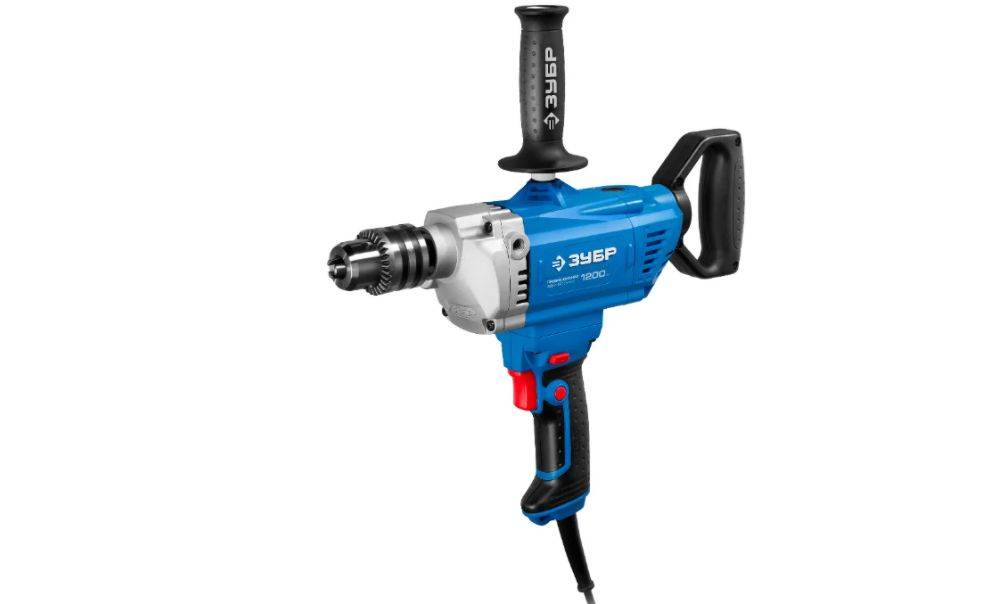 1.2-киловаттная дрель-миксер ЗУБР ЗДМ-1200 РММ2 оптимальна не только для сверления отверстий, но и для размешивания различных растворов и лакокрасочных материалов. Малооборотистый редуктор позволяет регулировать частоту вращения инструмента. Преимуществом устройства является наличие реверса. Крутящий момент дрели составляет 160 Н·м: этот показатель обеспечивает возможность сверления отверстий значительной глубины и диаметра. Максимальный диаметр сверления дрели-миксера, использующей 16-миллиметровый патрон, равен 40 мм. В комплектацию здм 1200 входит ключ патрона и дополнительная рукоятка.