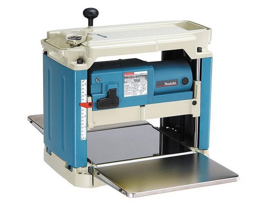 Модель Makita kp 312 s используется для окончательной обработки и выравнивания древесного материала с большой площадью. Его электродвигатель имеет мощность в 2200 Вт, который дает большое количество оборотов (12000 в минуту). Особенности модели — это нож из твердой стали и патрубок подключения к пылесосу для сбора мусора и пыли. А также возможность плавной регулировки глубины строгания до 3,2 мм и теплореле для автоматического отключения при перегреве. Весит 18,4 кг.