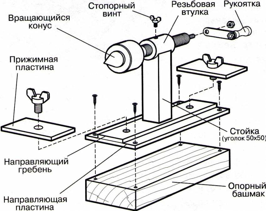 Далее нужно изготовить упор, который будет выступать в роли задней бабки.