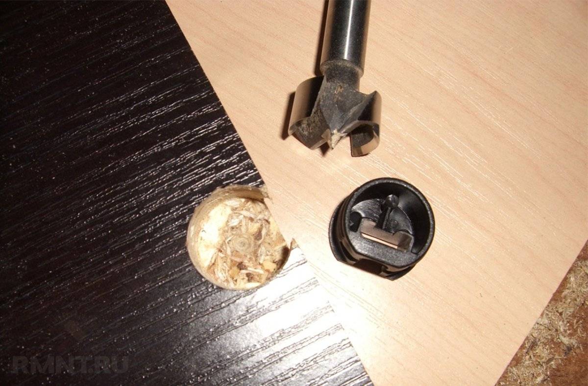 Используемый инструмент, предназначенный для обработки принято считать ручной фрезер. Существуют средства исполнения корончатого типа, они позволяют выполнять работы обыкновенной дрелью. В таком случае, фрезерная головка, применяемая по дереву, выполняет роль обработки кромок, изготовления простых отверстий.