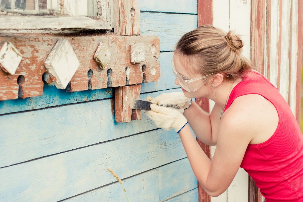 - Очистка стен фасада от старой краски или лака (если есть) с помощью металлических скребков или шлиф-машинок;