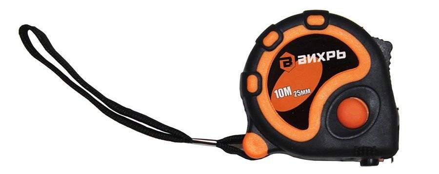 Назначение рулетки ВИХРЬ (10 м, ширина ленты 25 мм) — эксплуатация в разных условиях. Благодаря конструктивным особенностям устройства точность линейных измерений очень высокая. Жесткость полотна при этом сохраняется. Внешняя часть выполнена из обрезиненного пластика. Масса изделия 0,5 кг. Дизайн — отличный (на фото и в реальности).