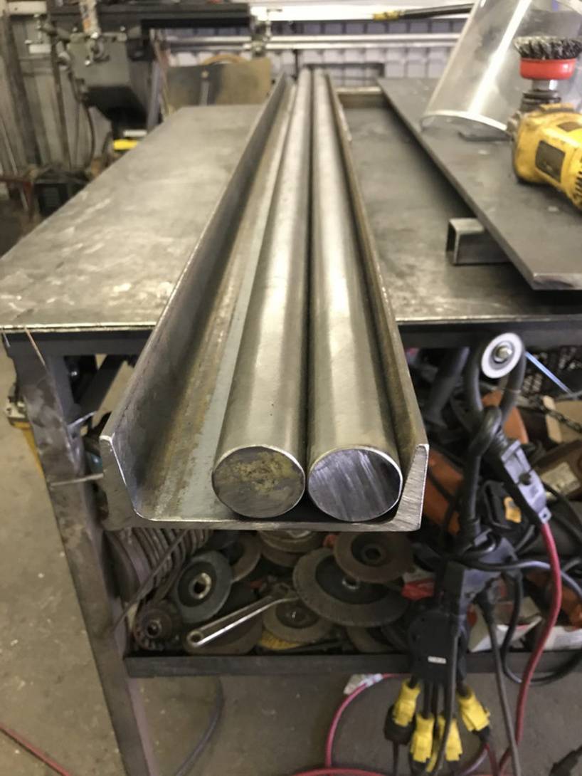 Моя нижняя матрица сделана из 5-дюймового (12,7 см.) c-образного канала и сплошного круглого стержня диаметром 1,5 дюйма (3,81 см.). Стержни находятся внутри с-образного канала, а для регулировки расстояния между стержнями используются прокладки. Другими распространенными вариантами являются изготовление нижнего штампа из углового железа, изготовление штампа из цельного материала или покупка имеющегося в продаже штампа и адаптация его к вашей машине.