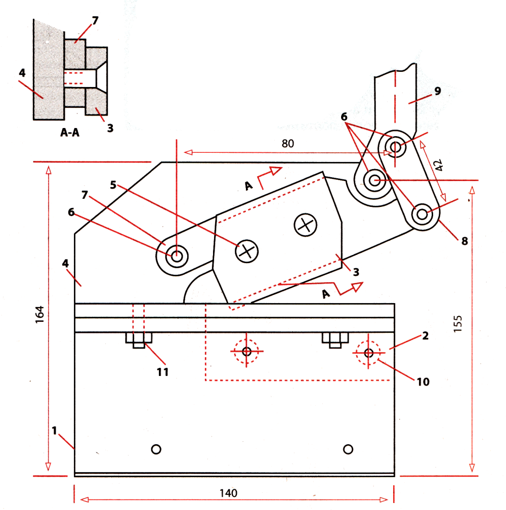 Стальное несущее основание у пресса должно быть не менее 10 миллиметров. Для того чтобы закрепить нижний нож и стол к основе, в нем делают сверлом пазы для фасонных болтов.