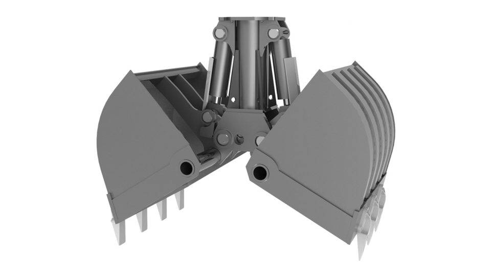 Немецкий производитель грейферов Kinshofer разработал особую конструкцию, исключающую гидроцилиндры. При работе оборудования с одним гидроцилиндром (или двумя) всегда есть риск повредить шток – а значит риск дорогостоящего ремонта и долгого простоя техники.