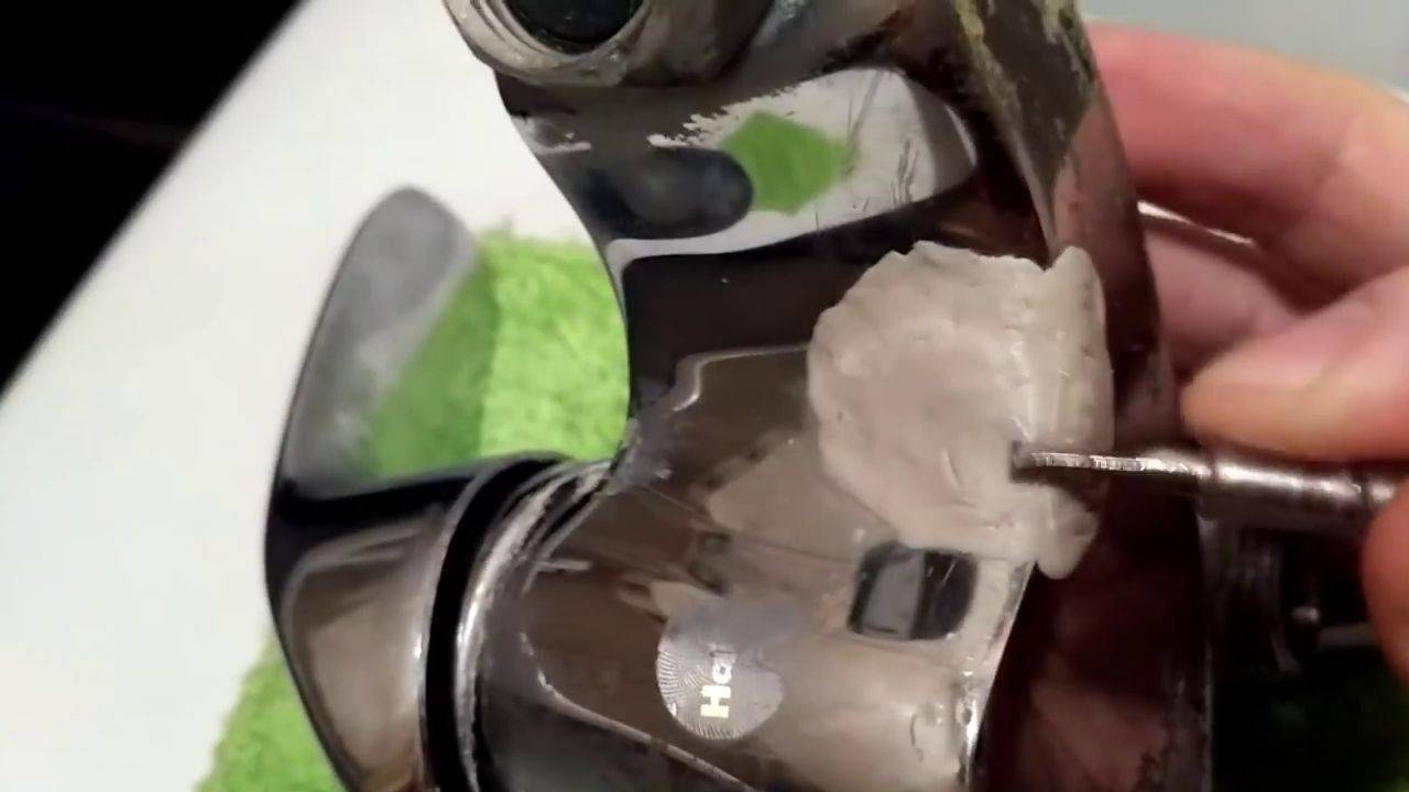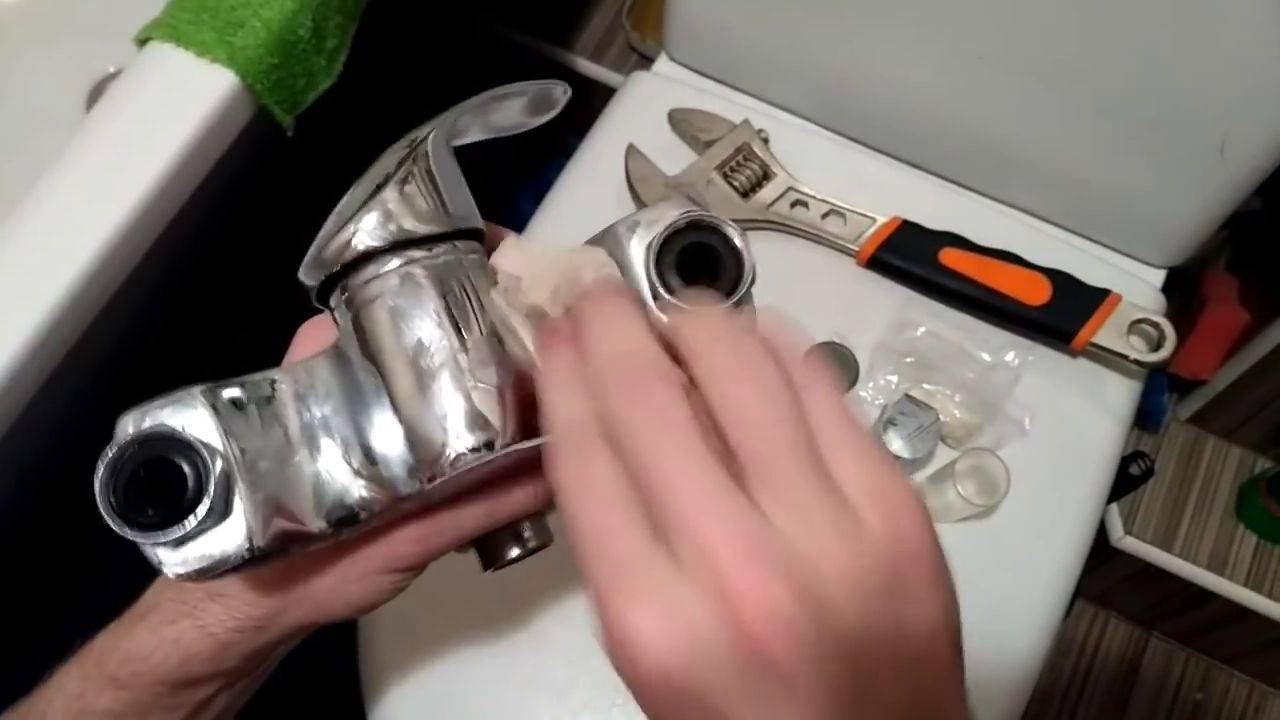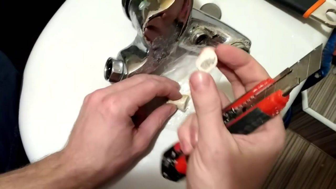 ![]() | Через час можно проверить прочность заплатки. Здесь отверткой или иным твердым предметом трут по поверхности. Убедившись, что смесь застыла, можно устанавливать смеситель на место. |