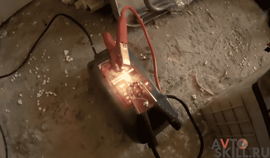 При подключении возможно мигание зеленым и красным, это говорит о том, что батарея неисправна. Если процесс идет нормально, лампочка индикатора работы ЗУ должна постепенно загореться красным.