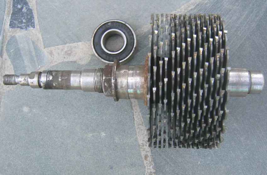 Вал для измельчителя можно выточить на токарном станке или использовать готовый от коробки передач старого автомобиля. Расстояние между соседними пилами должно быть около 10 мм. Если промежуток будет меньшим, это снизит рабочую область измельчителя. Если выполнить больший зазор, это будет способствовать застреванию мелких веток.