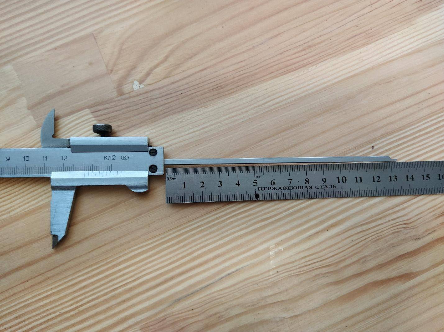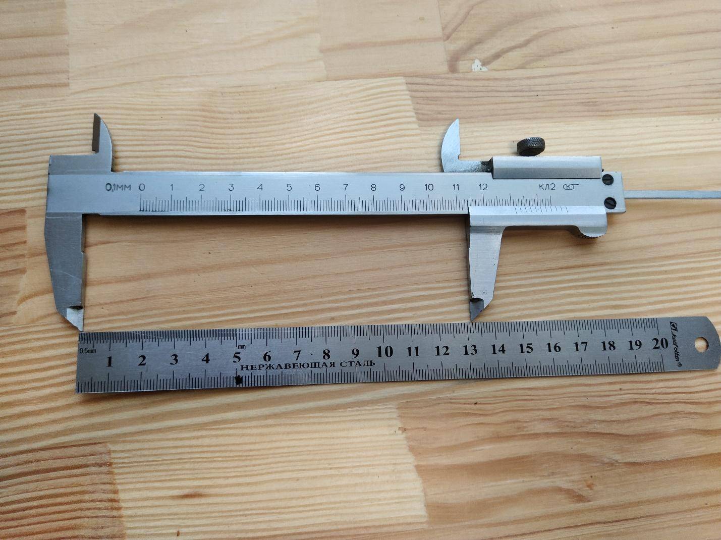 В зависимости от конструкции изделия шкала может иметь различную длину (см. таблицу выше) и, соответственно допустимый диапазон измерения. Эти цифры не совпадают. Так, если длина разметки штанги инструмента составляет 14,5 см (цифровые обозначения могут быть проставлены не полностью, что видно на фото), то замерить с его помощью можно деталь или отверстие с шириной/диаметром/глубиной до 13…13,3 см.