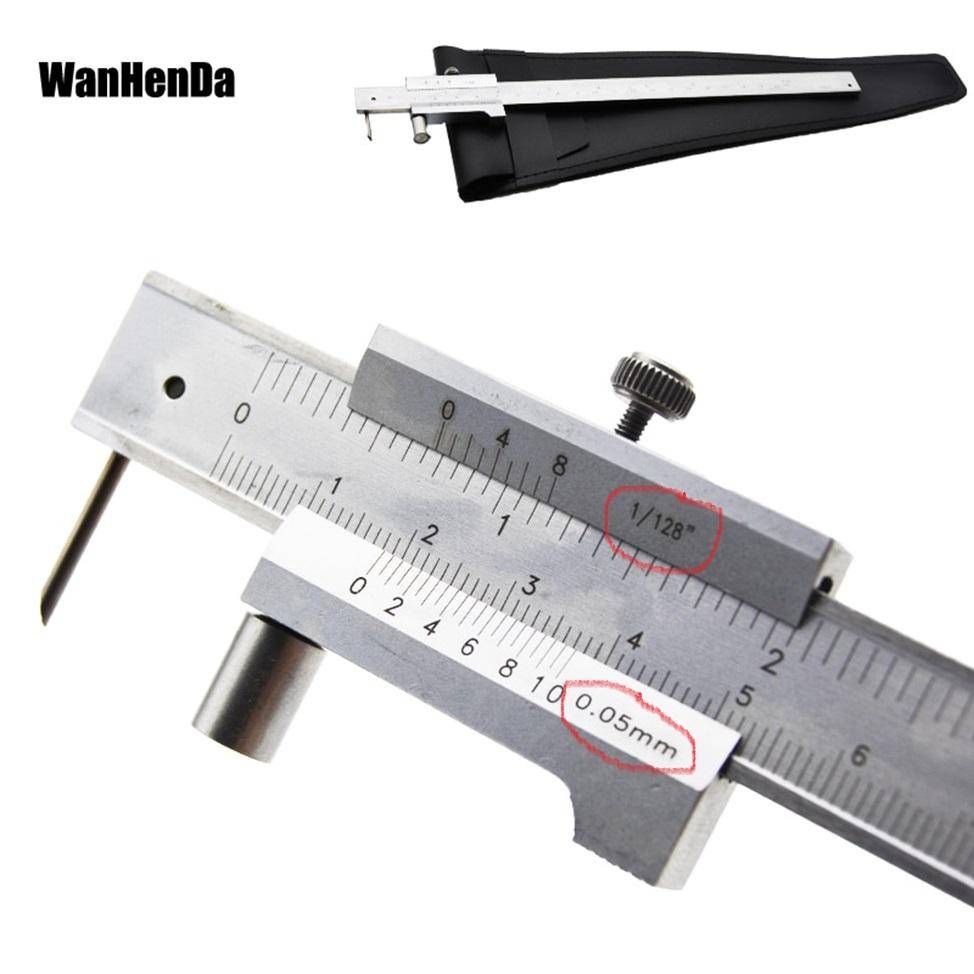 Штангенциркуль ШЦ-II (см. рис. слева) можно применять не только для измерения, но и для разметки. С его помощью наносят прямые риски от строго прямолинейных базовых кромок или поверхностей заготовок, делают засечки, проводят окружности.
