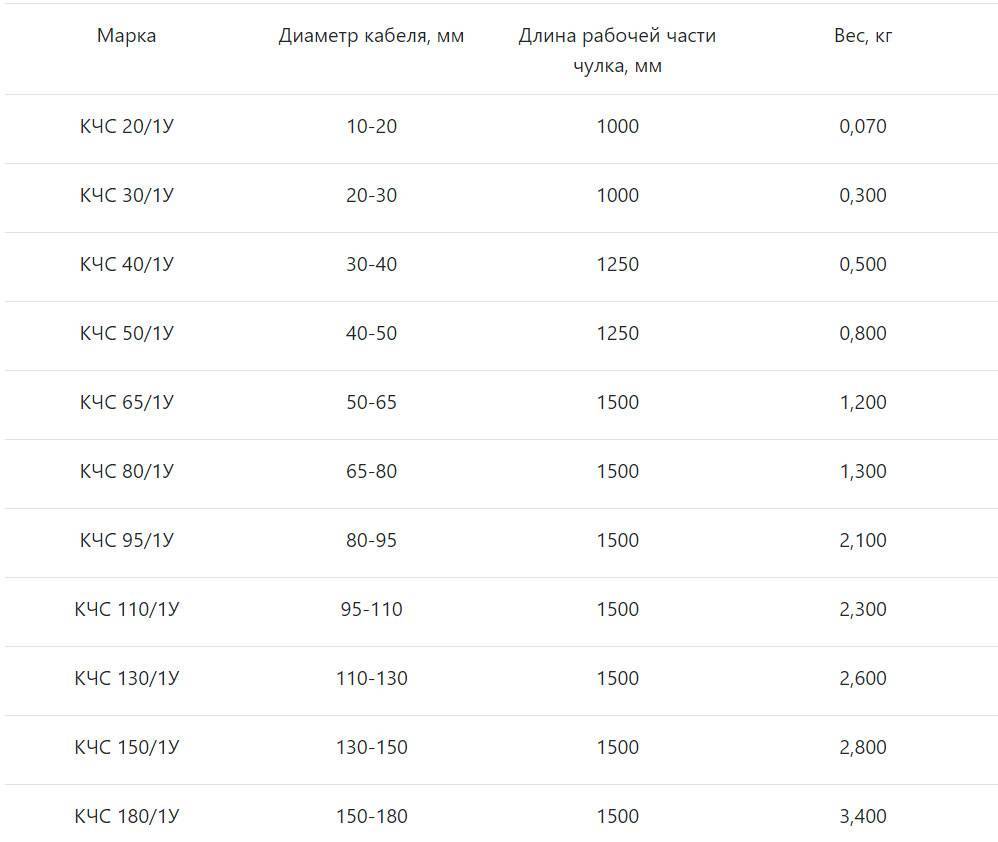 После этого по диаметру кабеля подбираете необходимый чулок. На рынке есть модели от 4 до 180мм.