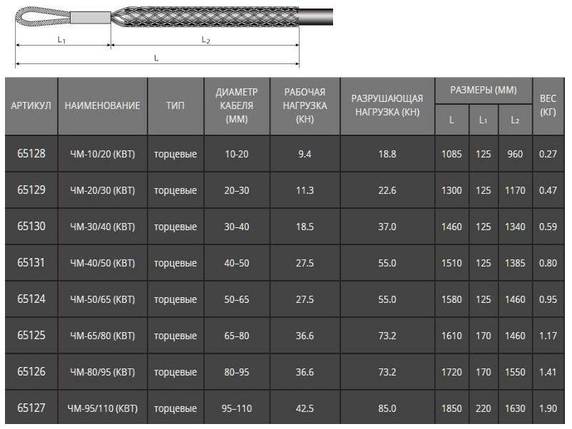 Характеристики чулка для захвата кабеля