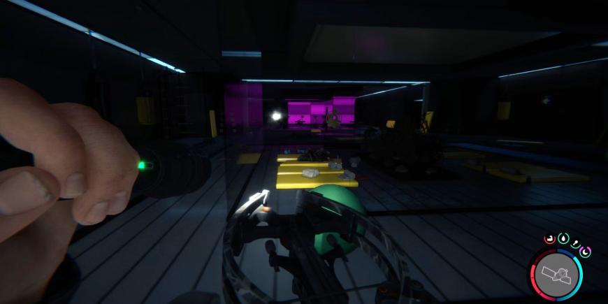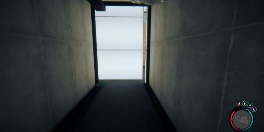 Протиснитесь через щель в другой зал, одна сторона которого заблокирована камнями и грязью, а другая – запертыми дверями. Используйте ключ-карту, чтобы отпереть двери. Игроки увидят множество тренажеров в темной комнате с фиолетовым светом. Справа находится бильярдная с еще большим количеством оборудования, а слева – группа мутантов.