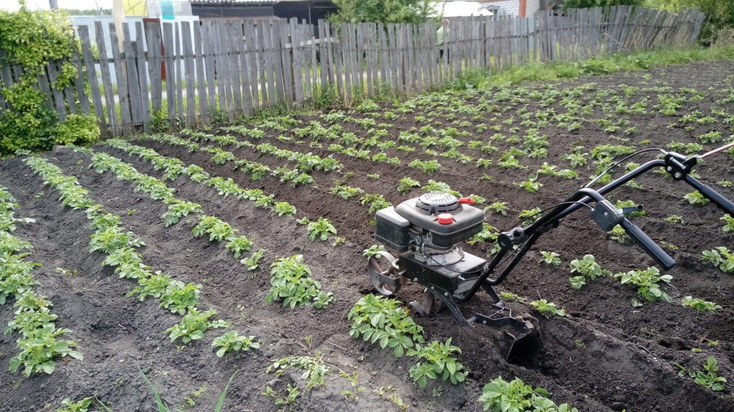Окучивание картошки мотоблоком облегчает ее посадку и уход.