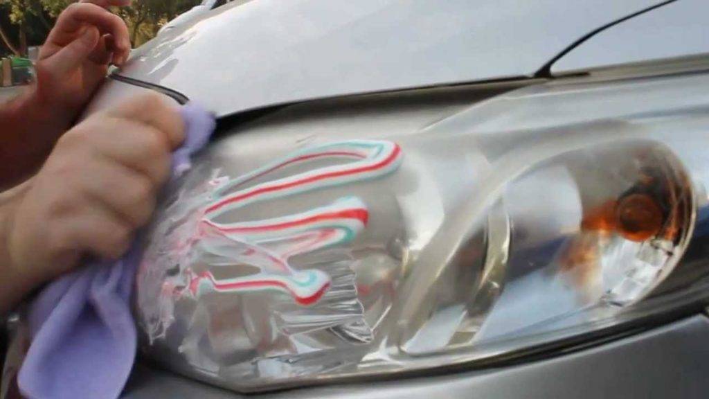 удалить жёлтый налёт с поверхности фары поможет обычная зубная паста