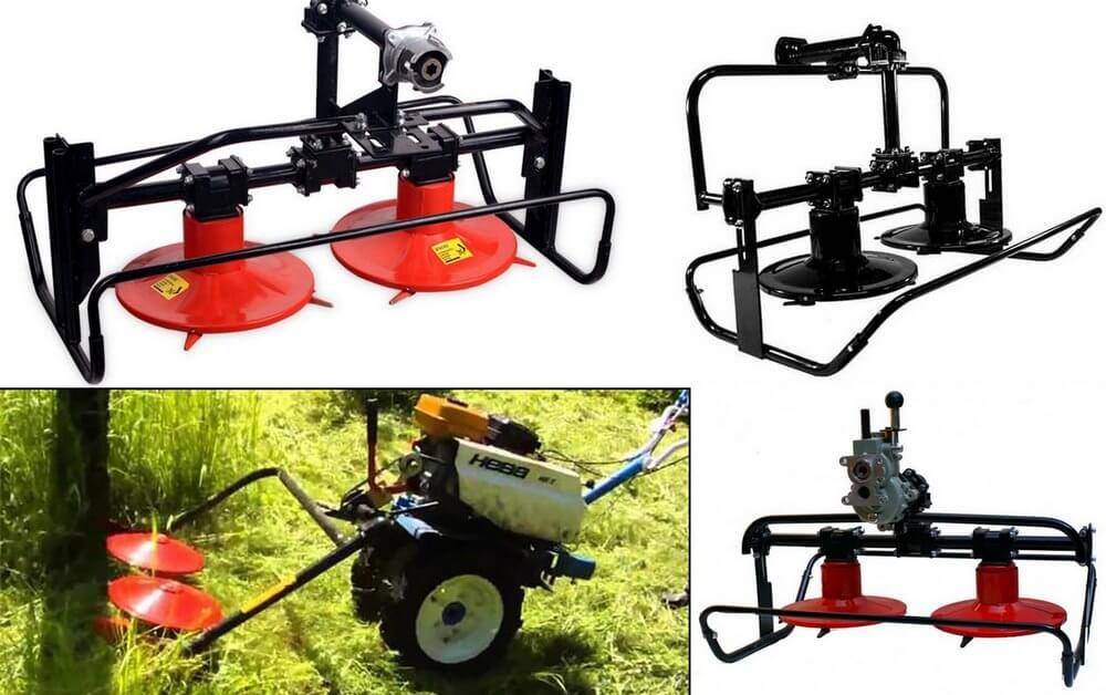 Внимание! Двухдисковый аппарат не намного сложнее однодисковой версии, но при эксплуатации, скашиваемая трава укладывается в валок, который формируется между дисками. В дальнейшем проще сгребать и транспортировать скошенную массу
