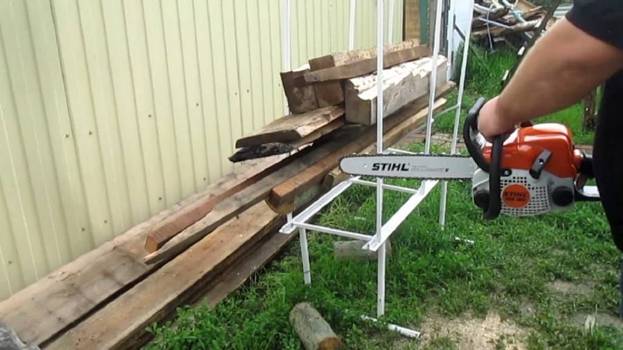 Деревянный брус. Устройство можно очень быстро собрать, но оно может испортиться от влажности или случайно повредиться при работе пилой. Деревянные столбики. Такие конструкции часто используют для опор забора. Из них можно собрать простое и дешевое, но не самое прочное изделие. Металлопрофиль. Из квадратной или круглой металлической трубы можно соорудить очень прочные и удобные козлы для распила дров. Такая конструкция будет служить десятилетиями.